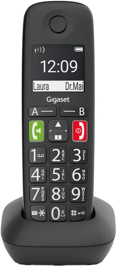 Das einfache Wählen einer Telefonnummer ist der Auftakt zu einem angenehmen Telefonerlebnis. Genau deswegen macht die ergonomische Tastatur des Großtastentelefons Gigaset E290 die Bedienung jetzt so komfortabel wie möglich: Große, beleuchtete sowie deutlich beschriftete Tasten sorgen für gute Lesbarkeit. Besonders wichtige Kontakte, zum Beispiel für den Notfall, können Sie auf einer der beiden Zielwahltasten A / B einspeichern. Wenn von dem Telefon aus nur eine Rufnummer angewählt werden soll, ist die Direktruf-Funktion hilfreich. In schwierigen Situationen reicht das Drücken einer beliebigen Taste um eine vorab hinterlegte Telefonnummer zu aktivieren.