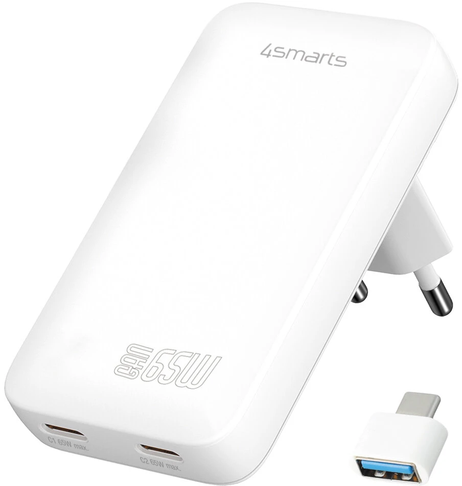 4Smarts Netzladegerät FlatPlug Slim Dual 65W GaN 2C weiß
